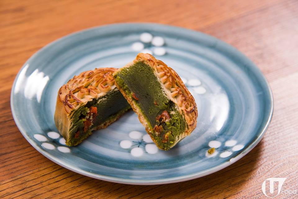 抹茶月餅裏面有粒粒杞子肉,茶香中滲出點點甜香,很 healthy!