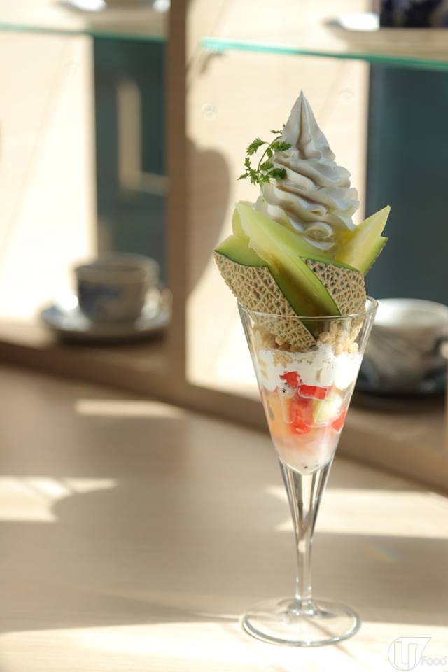 用高身玻璃杯載着,底層鋪了西瓜、奇異果、火龍果,上層再放滑忌廉、脆米及網紋蜜瓜,分量十足,賣相優雅,味道卻令人不顧一切。