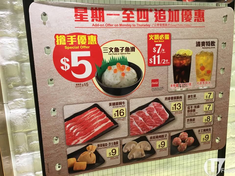 逢星期一至四都有追加優惠,有三文魚子魚滑、手工豬肉丸、丹麥優質豚肉等,啱晒大胃王。