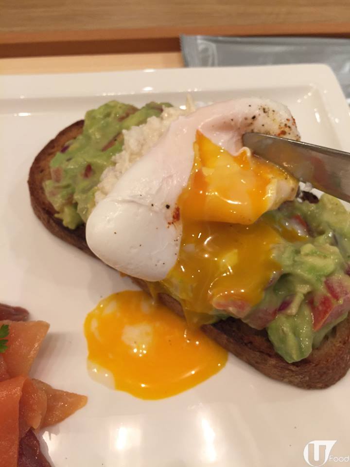 牛油果醬上仲有水波蛋(Poached Egg),切開即湧出金黃色嘅蛋汁,與牛油果醬拌勻同食,感覺更幼滑。