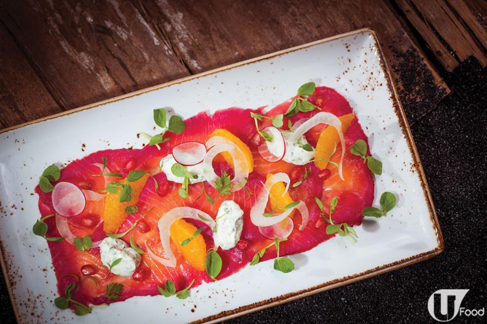 總廚更特別推介全新菜式──自家製紅菜頭醃三文魚,採用可持續挪威三文魚,預先醃製兩天,再加入紅石榴糖漿、法式酸忌廉、香橙、茴香及芫荽製作而成,酸酸甜甜,屬必試心機菜式。