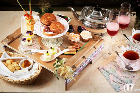 法式貴氣 style 嘅 Maison ES,無論裝修和食物都好 girlish,近排仲經常同品牌 crossover,推出唔同主題 tea set,繼巴西膠鞋品牌 Melissa 之後,今次同花店 Hahahaflorist 合作,推出「花樣田園」限定下午茶。Tea set 以噴成金色的木箱上桌,貴氣十足,比三層架有驚喜!當中有 3 款鹹點 7 款甜點,部分糕餅造型係花形,有啲仲以花入饌,食到啖啖花香。