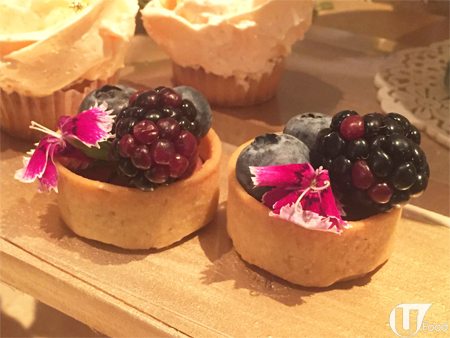 朱古力雜莓撻撻底鬆化有牛油香,內有朱古力醬,以藍莓和紅莓點綴,賣相小巧討好。