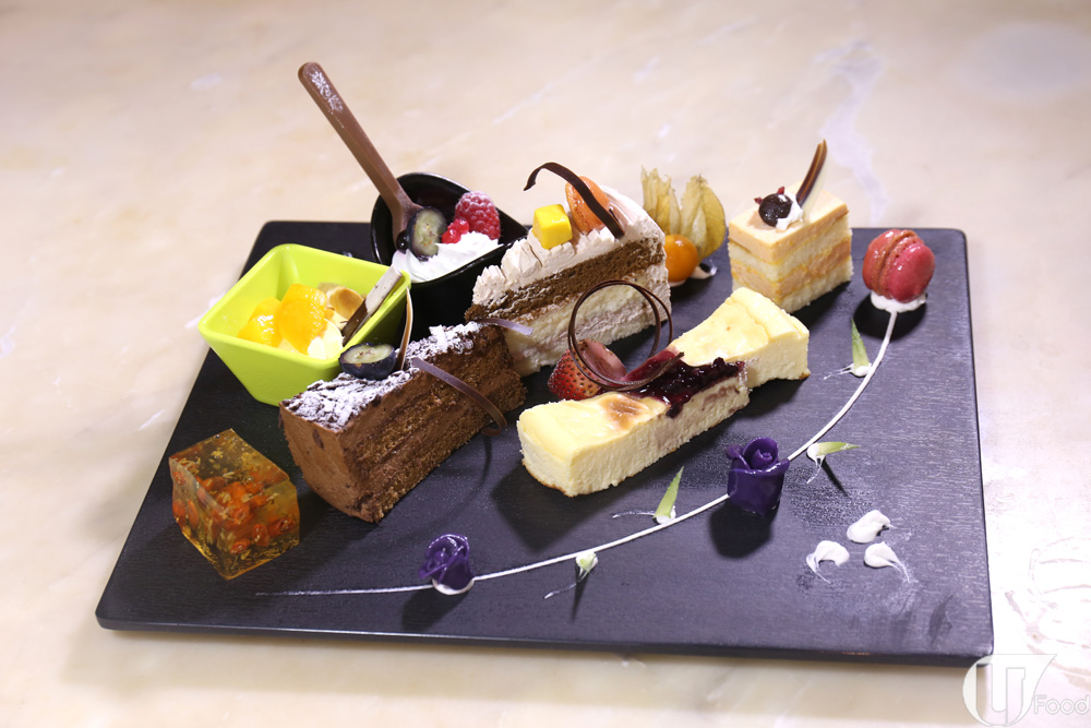 甜品精不妨進攻杞子桂花糕、芒果杏仁奶凍、朱古力慕絲蛋糕、熱情果荔枝乳酪、芒果栗子餅、藍莓芝士餅、香橙蛋糕。