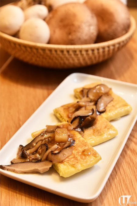 大廚首次使用微辣嘅明太子醬汁入饌,厚燒玉子混入冬菇製成,蛋香伴菌香,滿是秋日滋味,也是頗嶄新的燒玉子口味。