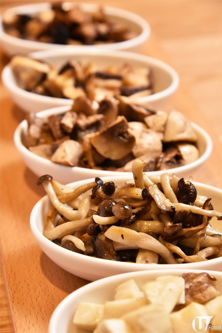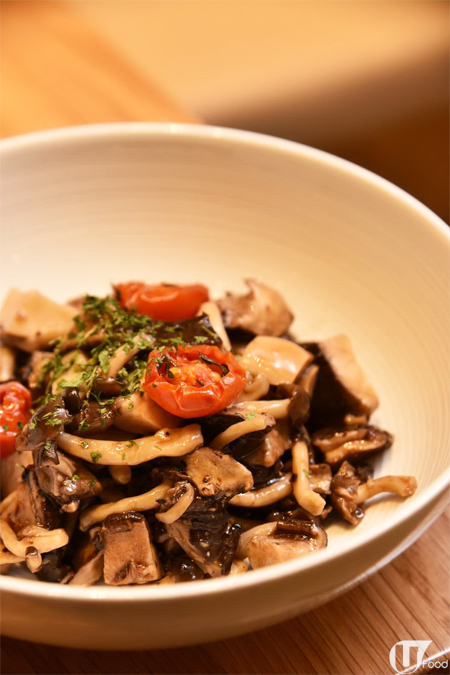 集齊雞髀菇、日本本菇、蘑菇及燒烤菇,以烤焗方式炮製,避免菇菌出水流失菇香。伴以酸甜黑醋提味,酸咪咪中滲出濃郁菌香,好開胃。