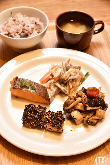 料理套餐有 3、4、5 品選擇,除了以菇菌為主題嘅冷熱盤外,仲有雞肉蔬菜蒟蒻沙律、味噌烤比目魚柳及有機藜蜜芝麻烤雞等選擇。每個料理套餐都包還湯及餐包/白米/十穀米。
