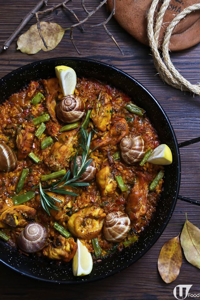 先將兔肉、蝸牛肉等煮香,再加入魚湯、迷迭香和米粒煮至乾身,飯粒飽滿彈牙,嗦滿鮮香。