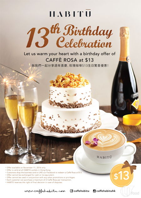 只要去全綫 HABITU 放低名片,或者 LIKE HABITU 嘅官方 Facebook,即可以優惠價 $13 購買 玫瑰咖啡 1 杯(原價要 $49 㗎),激抵!天氣凍咗咁多,飲番杯玫瑰咖啡即刻暖晒!