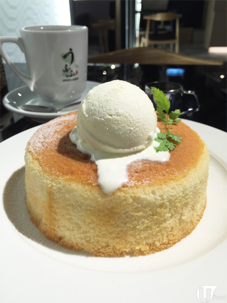 Souffle Hotcake 於每日 1pm 開始供應,店員話製作可能要半小時,但實際只需 15 分鐘就整好有得食!Pancake 呈淡黃色,色澤分布平均。整碟 pancake 賣相無花巧,簡單兩件 pancake 放好,加牛油及忌廉即成。點到即止嘅擺碟,好有日式嘅感覺。