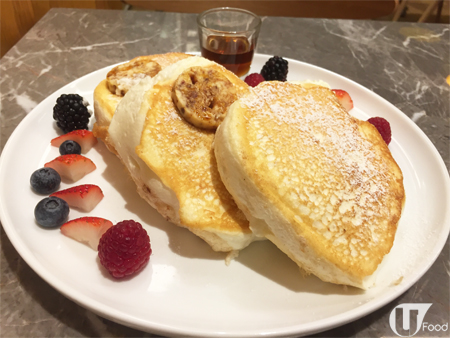 睇價錢真係有啲貴,但 pancake 一碟 3 大件(平均 $40/件),分量十足!Pancake等咗 10 分鐘左右就有得食,表面呈微微金黃,旁邊有士多啤梨、藍莓、紅莓等伴碟,擺碟有心思。