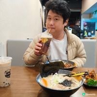 今晚同老公嚟到元朗一間小店《貍貓拉麵》🏮 老闆好友善😊,一進來就聞到濃濃嘅湯香味👃🍜 叫咗碗黑松露日式叉燒拉麵🍜,味增湯底醇厚,浸滿松露幽香✨;老公點咗自家製豬軟骨拉麵🐷,豬軟骨燜到腍透入味😋 老闆悄悄推介新出品🔊,菜單都未有嘅蒜香燒肉串燒🍢,咬落去juicy惹味💦! 炸魷魚鬚粉少脆口🦑,再來兩杯凍飲🥤,珍珠奶茶滑溜🧋,手打檸檬茶酸爽解膩🍋❄️ 有時幸福就係咁簡單💖:一碗好麵,一個陪你食麵嘅人👫 #元朗美食#貍貓拉麵#香港小店