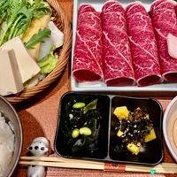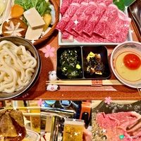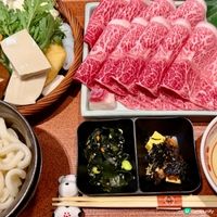餐廳提供6款A4+和牛不同部位和份量的壽喜燒套餐,最平$168有交易,CP值頗高。精品赤身壽喜燒套餐($168/120g;$198/180g)有齊前菜、A4和牛赤身、野菜、蘭王蛋、主食(白飯/烏冬)及甜品。赤身部位油花較少,但也不會過韌,肉味濃。特選肩胛壽喜燒($198/120g;$238/180g)油花恰到好處,油脂的甘甜和牛肉的香氣兼備。