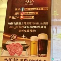 目前餐廳更有新張優惠,只需讚好 / 追蹤「壽喜.關西」官方帳號,拍攝食物照上傳至 Facebook 或 Instagram,並標籤「壽喜.關西」即可換取40g 赤身和牛切片(一份)或 Sapporo 生啤(一杯)或 Orion 黑生啤(一杯)。有興趣的朋友記得預先book位!