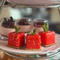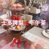 經典英式三層下午茶放置了多款精緻甜點,例如薄荷士多啤梨慕絲番石榴士多啤梨泡芙黑朱古力士多啤梨意式奶凍士多啤梨及意大利芝士配川椒塔可餅。無限量供應的士多啤梨軟雪糕亦是下午茶的重點之一。
