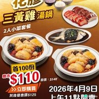 【🔥4月9日上午限時開搶|大家樂eatCDC花膠雞鍋二人餐 $1️⃣1️⃣0️⃣限量快閃!🤯】 忙碌一日之後,最啱就係同朋友坐低食返餐暖笠笠嘅滋補鍋。精打細算嘅你,見到呢個價點可以唔心動!😋 今次大家樂 eatCDC 幫你準備咗晚市滋補好選擇!花膠雞鍋小菜二人餐券,份量豐富、配搭十足,仲有限時限量優惠價低至74折,想食得好又想慳得精,就記得準時上大家樂eatCDC 搶購喇!⏰ 今日上午11時 準時開賣!限量 100份只售 $110,之後仲有 $125不限量版本!手快有,手慢冇! 👉 立即搶購: https://bit.ly/4cvPvQp 💰 晚市花膠雞鍋小菜二人餐券 1️⃣ 花膠雞鍋 x2 足料花膠配三黃雞,湯底滋補清甜,好味又滿足💛 2️⃣ 豉汁蒸倉魚/豉汁蒸鱸魚 x1碟 鮮味十足,啖啖鮮嫩🐟 3️⃣ 叉燒拼燒鴨 x1碟 經典燒味組合,香氣同滿足感即刻升級🔥 4️⃣ 白飯 x2碗 5️⃣ 糖水 x2碗 *圖片只供參考 *優惠受條款及細則約束 #CafedeCoral#大家樂#有大家就有大家樂#eatCDC#花膠雞鍋#晚市二人餐#限時開搶#快閃優惠#食得精明#晚市推介 ================================= #長隆放電假期